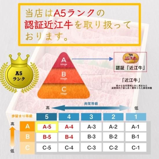 当店は特に品質の高い認証近江牛の最高ランクA5ランクのみの使用